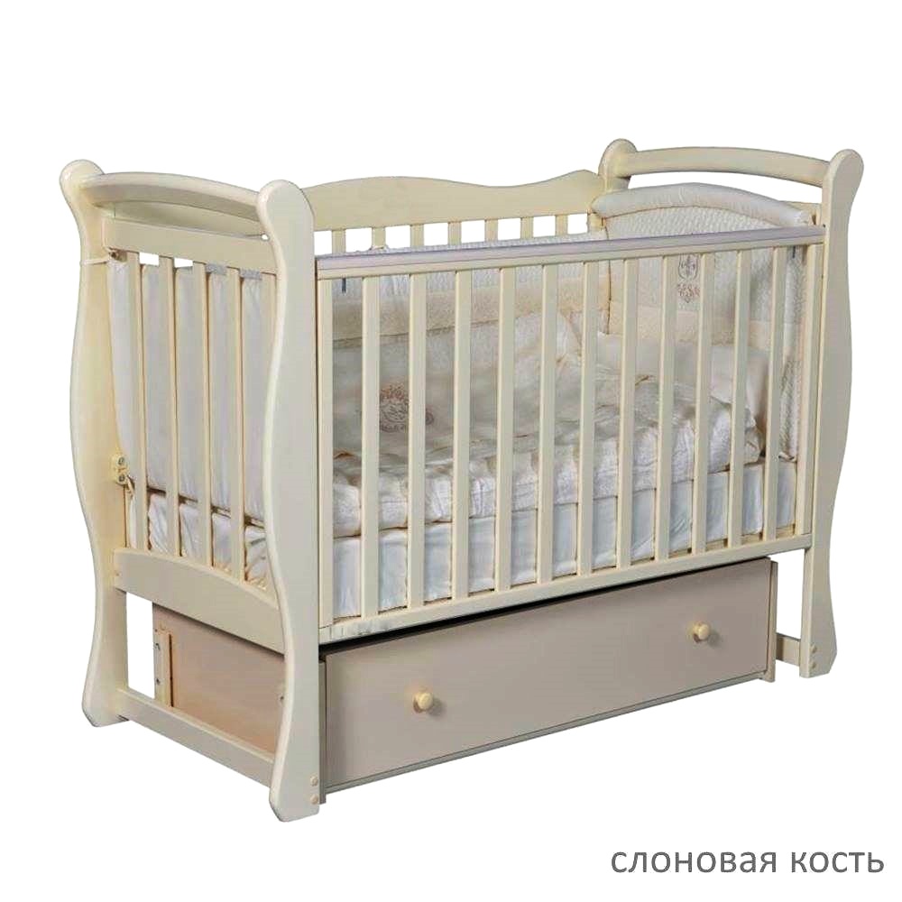 Антел Julia 1 – детская кроватка с универсальным маятником, выполненная из массива березы. Дно ложа реечное и регулируется в 2-х положениях по высоте. Боковая стенка опускается для удобства укладывания малыша.