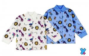 Кофточка из футера с печатью, длинным рукавом и кнопками по центру. Край обработ...