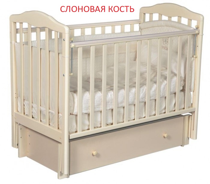 Специальный запатентованный механизм опускания боковой стенки одной рукой, который малыш самостоятельно использовать не сможет, так как боковина снабжена фиксаторами с двух сторон.
