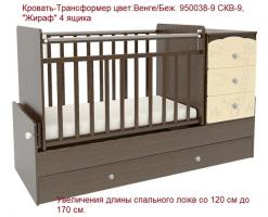 -Акция 18000руб. Кровать-Трансформер СКВ-9 Венге/беж. 950038-9 "Жираф" ,4 ящ. 1
